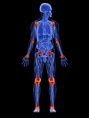 männliche Anatomie mit schmerzenden Gelenken