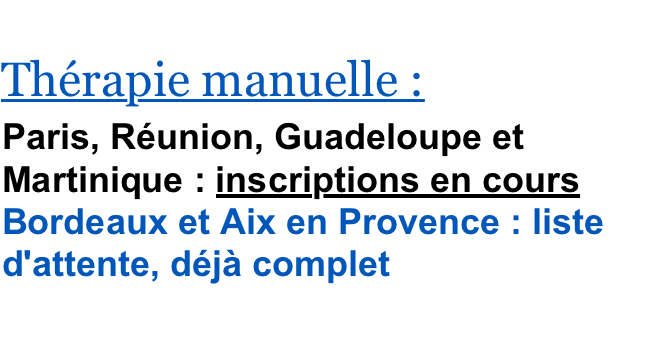 Formations en Masso-kinésithérapie, en Thérapie manuelle, en Ergonomie et physiothérapie